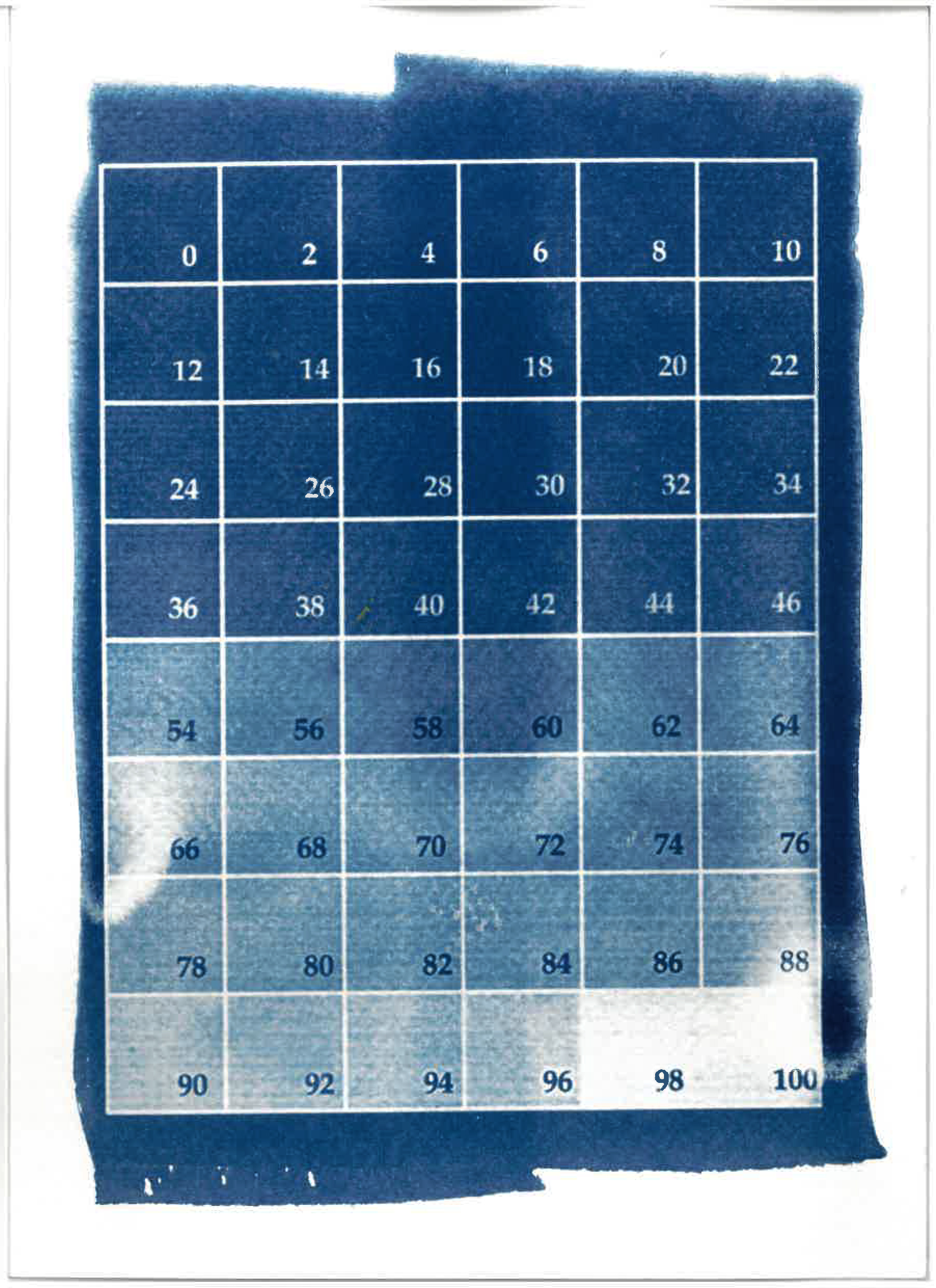 Cyanotypie ist ein Negativverfahren, das durch UV-Belichtung funktioniert. Objekte oder (fotografische) Negative werden direkt auf lichtempfindliche Flächen positioniert. Fotogramme entstehen als 1:1-Abdruck - als Index dreidimensionaler Körper in der Fläche. Die Cyanotypie erlaubt die Untersuchung von Maßstab, Proportion, Positiv-Negativ-Verhältnissen und Schattenwurf und operiert dabei zwischen Präzision und Unberechenbarkeit – Belichtungszeit, Materialoberfläche und Färbung beeinflussen das Ergebnis und erfordern experimentelles Arbeiten.